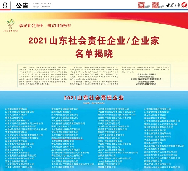 濰坊農(nóng)創(chuàng)集團(tuán)榮獲“2021山東社會(huì)責(zé)任企業(yè)”稱(chēng)號(hào)